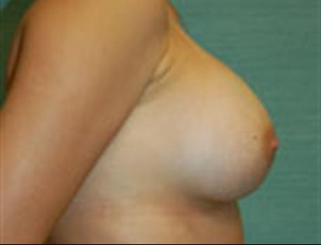 I performed this procedure at my plastic surgery practice using high profile smooth round saline implants. I filled the left implant to 360cc and the right implant to 350cc, which brought the patient’s breasts to a D cup while correcting the asymmetry between them. The implants have given her a much fuller, more feminine physique and there is no scarring on her breasts. She feels that her breasts are now in proportion with her body and is very pleased with the results of the procedure.
