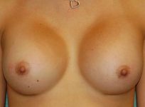 This is a 24 year old female who wishes a breast augmentation to improve her body proportions. She is aware that she has asymmetrical breasts with her right breast being slightly smaller than her left. She was advised that different implants could be used to improve the size of the right breast, but no guarantee would be made that the right breast would not become larger than the left. She wished to keep her breast implants the same size and not attempt to correct the asymmetry. She wishes to use a silicone implant. I used 375cc High Profile implants on both breast.
