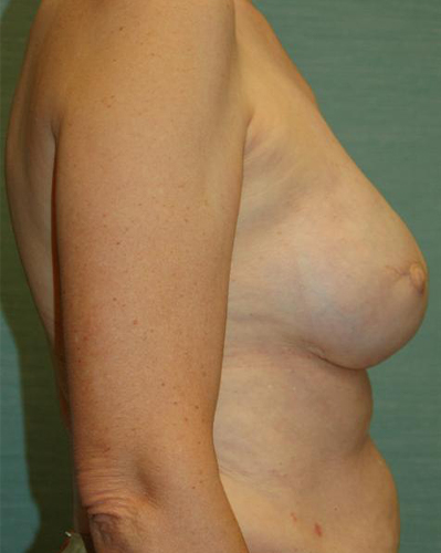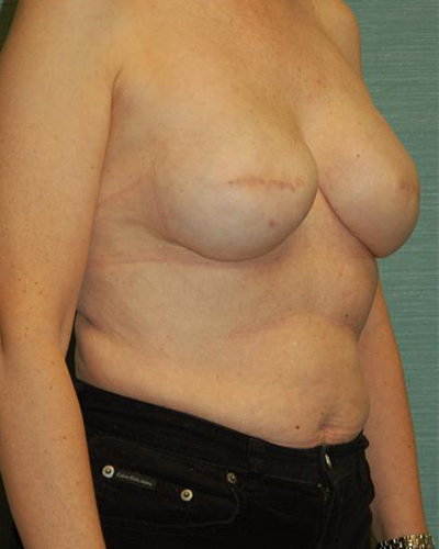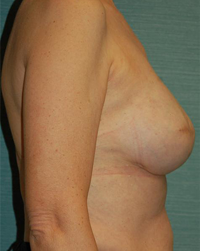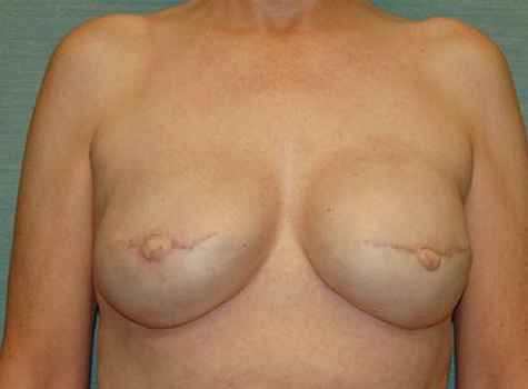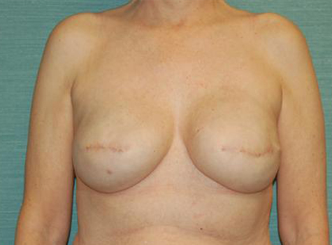 This patient is a 56-year-old female who had a previous left breast cancer and underwent bilateral immediate breast reconstructions with tissue expanders. She had been undergoing the tissue expanders’ process for over six months. Her expanders were filled to 550 cc. She was very happy with the size of her breasts and post six months of treatment was ready to have her expanders removed and implants placed. After removing the expanders 500cc Moderate Plus Silicone Gel Implants were placed. Six months after the implants were placed she went through with a bilateral nipple reconstruction.