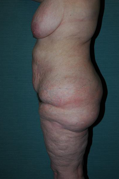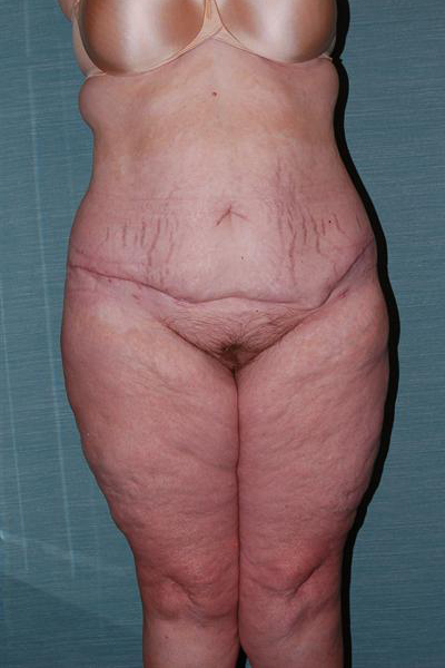 This middle-aged woman was concerned about the appearance of her pear-shaped body. Despite efforts to contour her middle section and lower body with diet and exercise, she was not satisfied with her shape. To find out more about body-contouring cosmetic surgery in Las Vegas, this patient scheduled a consultation with me at my plastic surgery offices. After I reviewed her medical history and examined her existing shape, we discussed her goals and options before deciding on a combination procedure that would incorporate liposuction as well as lift procedures for the buttocks and outer thighs.