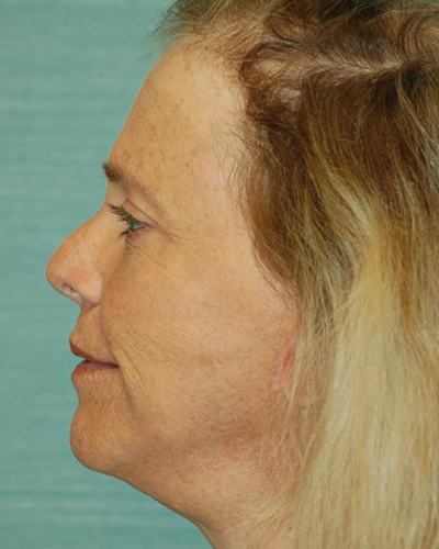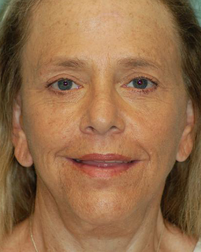This patient has enjoyed a typical recovery from her procedure. Her facelift in Las Vegas has significantly diminished the creases, lines and folds around her mouth, giving her a softer and much younger appearance. Her eyelid surgery also addressed the loose tissues both above and below her eyes, so that she looks much happier and more rested.