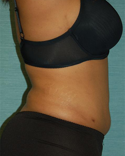 Her procedure was performed in an outpatient setting and she was able to head home just a few hours after surgery was completed. Her results are dramatic from every angle. From the front, you can see that her “love handles” have been downsizes. From the side, her belly appears noticeably flatter. From behind, the folds on her lower back have been eliminated.