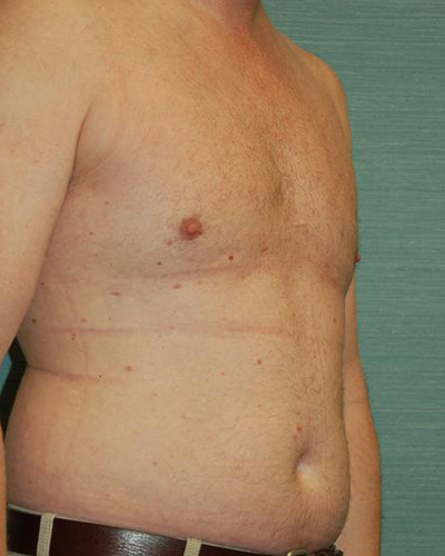 To minimize scarring, I use state-of-the-art approaches such as power-assisted and ultrasonic liposuction that allow me to sculpt a more masculine-looking chest without making incisions around the nipples or areolas. As this man’s post-operative photos clearly show, his chest has been significantly reduced and he is very happy with the results of his liposuction in Las Vegas.