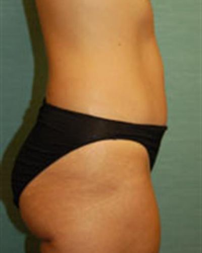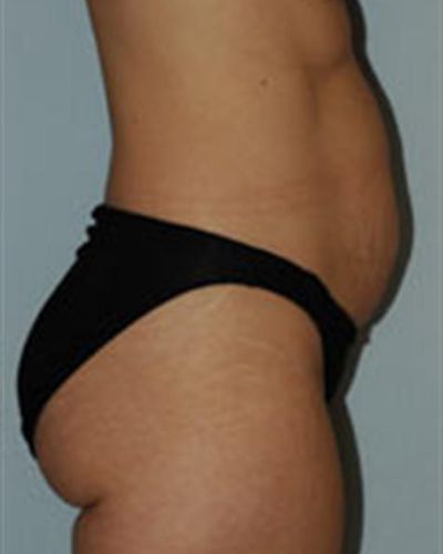 For this woman’s body contouring procedure, I performed abdominoplasty (tummy tuck) combined with liposuction to address the anterior and posterior flanks. During the abdominoplasty, I tightened loose abdominal muscles, then tightened and removed excess fat and skin to create a flatter, slimmer-looking waist. Liposuction can help refine tummy tuck results and even out other areas by removing localized fat deposits that will not disappear with diet and exercise. Together, these procedures result in a more complete makeover.