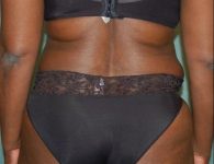 As her post-operative photos show, her Las Vegas plastic surgery successfully corrected the awkward, excess fat and skin from this woman’s abdomen, as well as restoring her abdominal muscles to give her a smoother, flatter contour. She feels that her body now displays softer, more appealing curves and, like most abdominoplasty patients, she is pleased to find that her scar is hidden below her underwear or bikini line.